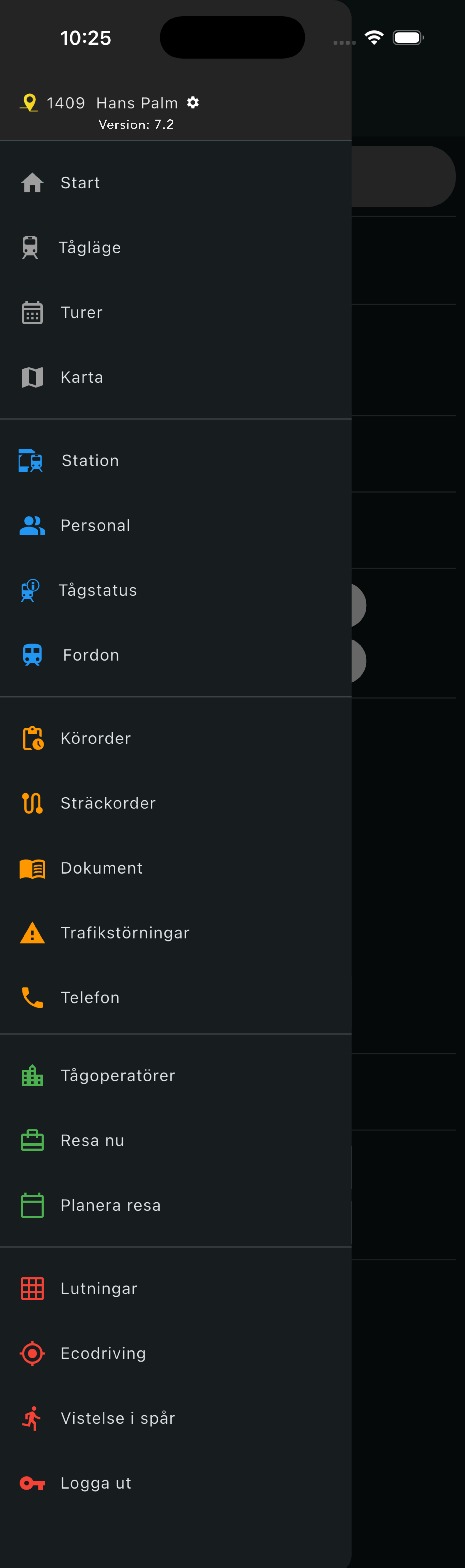 - Följ tur: Om personalintegration finns så följer Start och Tågläge dagens arbetsschema.