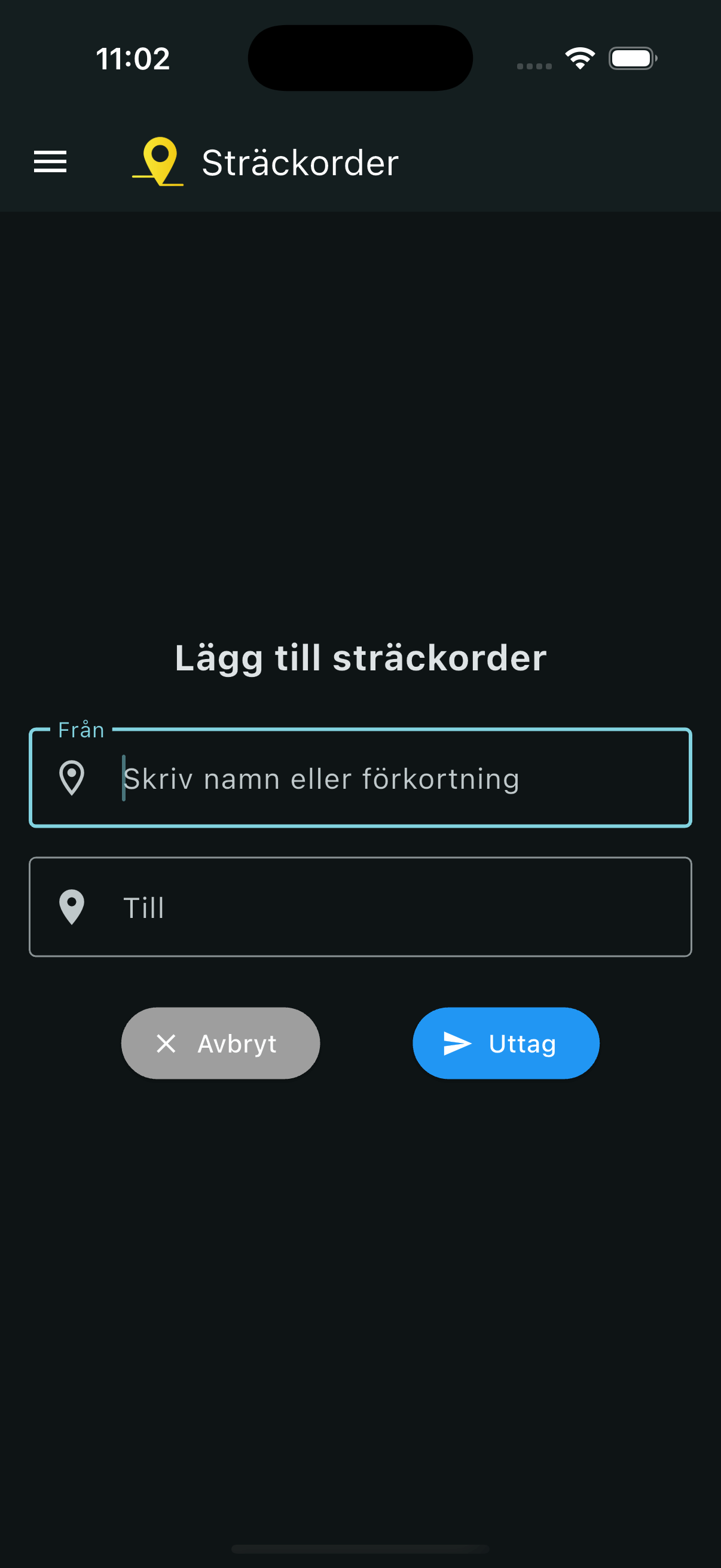 - Auto: Appen försöker själv att lista ut vilket tåg som avses, endast siffror.